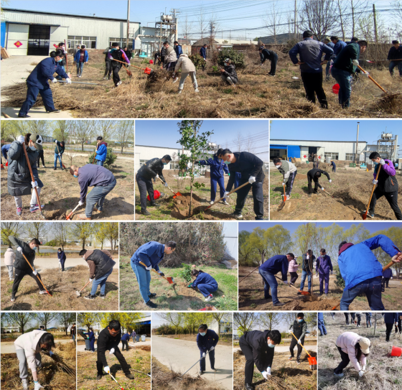 活動(dòng)現(xiàn)場(chǎng),大家干勁十足、分工協(xié)作、密切配合,明確清理區(qū)域后,就投身到雜草清理工作中,一派火熱忙碌景象,不一會(huì)兒,土地就變得干凈平整。緊接著大家更換工具,拿上鐵锨、鋤頭,刨坑栽樹,揮鍬鏟土、培實(shí)新土、堆起圍堰、提水澆灌……28株杏樹、桂樹迎風(fēng)挺立。