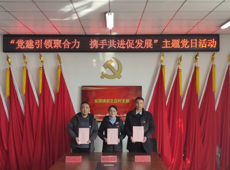 隨后,與會(huì)人員圍繞“村企聯(lián)建”開展“微調(diào)研”,在前王莊村委會(huì)黨員活動(dòng)室召開座談會(huì),分別介紹國(guó)投集團(tuán)發(fā)展沿革、前王莊村基本情況、國(guó)新公司發(fā)展情況等,以“支部聯(lián)盟、活動(dòng)聯(lián)辦、資源聯(lián)享、發(fā)展聯(lián)促”為抓手,著力構(gòu)建“以企帶村、以村促企、優(yōu)勢(shì)互補(bǔ)、互惠共贏”的發(fā)展新格局。會(huì)上,各方簽署了結(jié)對(duì)共建協(xié)議。