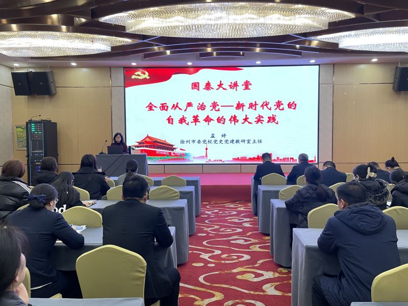 為進(jìn)一步推動(dòng)學(xué)習(xí)貫徹習(xí)近平新時(shí)代中國(guó)特色社會(huì)主義思想走深走實(shí),引導(dǎo)廣大黨員干部始終保持對(duì)黨的忠誠(chéng),不斷增強(qiáng)全面從嚴(yán)治黨的政治自覺,12月13日,國(guó)泰投資公司邀請(qǐng)徐州市委黨校黨史黨建教研室主任孟婷,以“全面從嚴(yán)治黨—新時(shí)代黨的自我革命的偉大實(shí)踐”主題,為國(guó)泰投資黨總支全體黨員進(jìn)行專題授課。