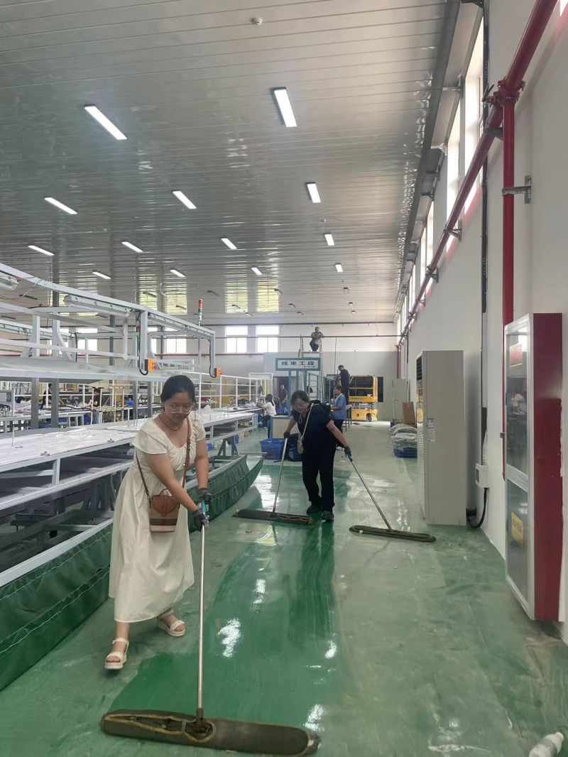 活動(dòng)開始,新亞公司相關(guān)負(fù)責(zé)人向大家講解了注意安全事項(xiàng),分發(fā)工作手套和防護(hù)用品,按照分配工作內(nèi)容大家熱火朝天的投入了新工廠的整理及清掃進(jìn)程。黨員干部們率先垂范,帶頭拿起清掃工具開展現(xiàn)場(chǎng)打掃,男同志們負(fù)責(zé)規(guī)整運(yùn)送貨物至倉庫,女同志們按照各自包干區(qū)域細(xì)致清掃廠區(qū)地面。在炎熱的高溫下,大家齊心協(xié)力、分工協(xié)作、奮勇爭(zhēng)先,很快完成各自分配任務(wù),充分體現(xiàn)了不怕苦不怕累的戰(zhàn)斗精神。