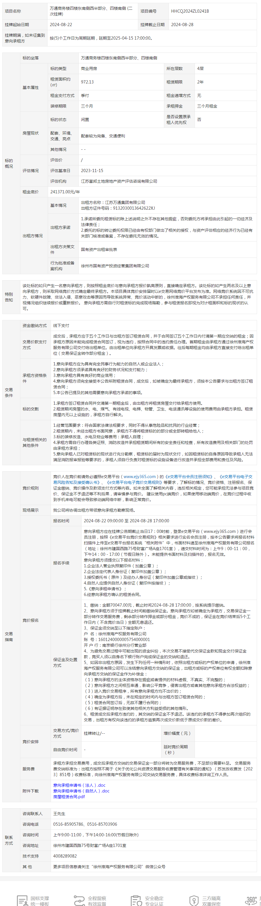 萬通商務(wù)樓四樓東南側(cè)西半部分、四樓南側(cè)招租公告