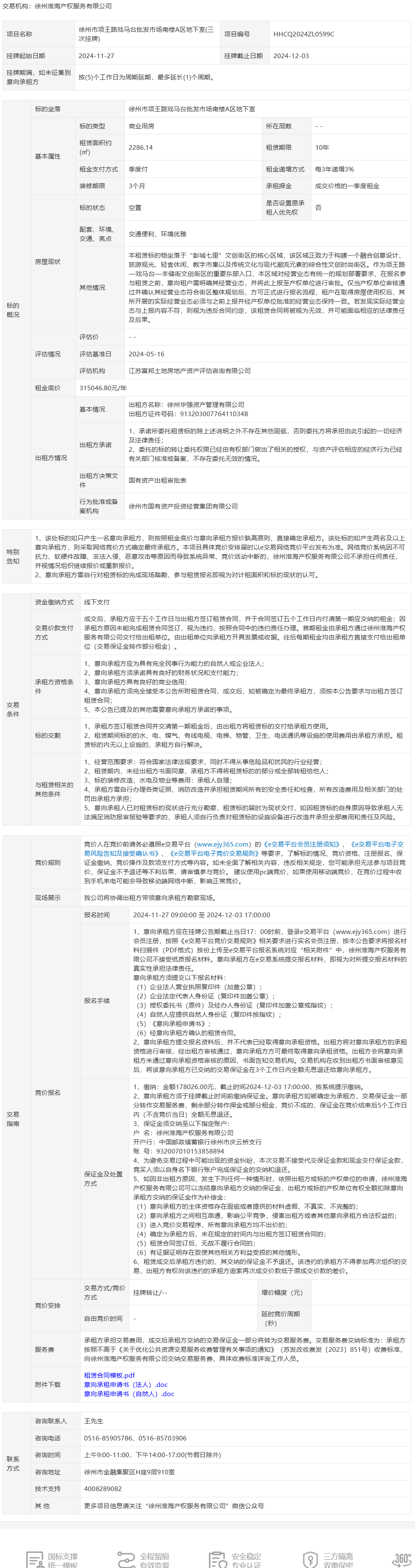 項王路戲馬臺批發(fā)市場南樓A區(qū)地下室招租公告