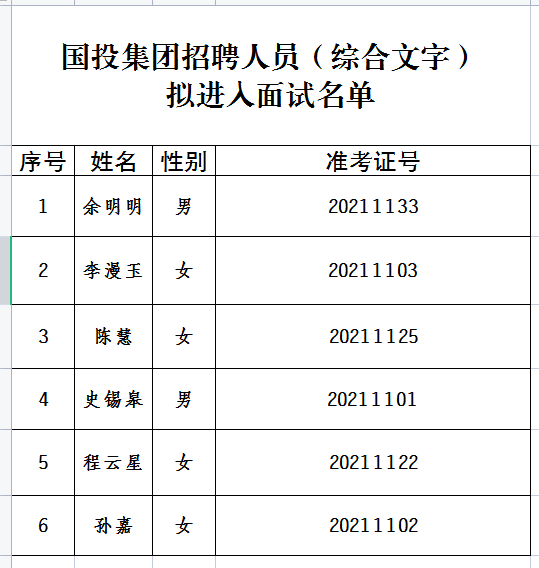 徐州國投集團2021年公開招聘綜合文字人員擬進入面試人員名單公示