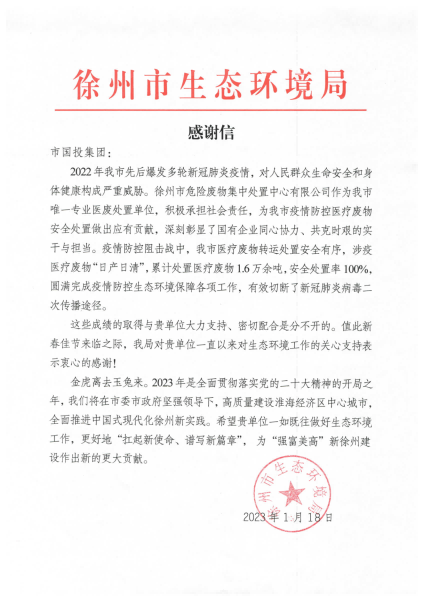 市生態(tài)環(huán)境局對國投集團為抗擊疫情作出的貢獻表示感謝