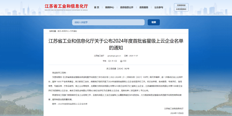 近日,江蘇省工業(yè)和信息化廳發(fā)布2024年度首批省星級上云企業(yè)名單,經企業(yè)申報、各地推薦、專家評價、信用審查、專題會審等程序,國新公司入選首批五星級上云企業(yè),標志著國新公司在強化工業(yè)互聯網平臺建設、推進數字化轉型和提升智能化制造水平等方面取得了顯著成效,在信息化…