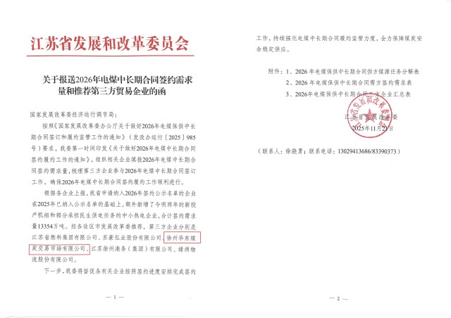 徐州國(guó)投集團(tuán)所屬華東煤炭交易市場(chǎng)獲得2026年度電煤保供中長(zhǎng)期合同簽訂資質(zhì)