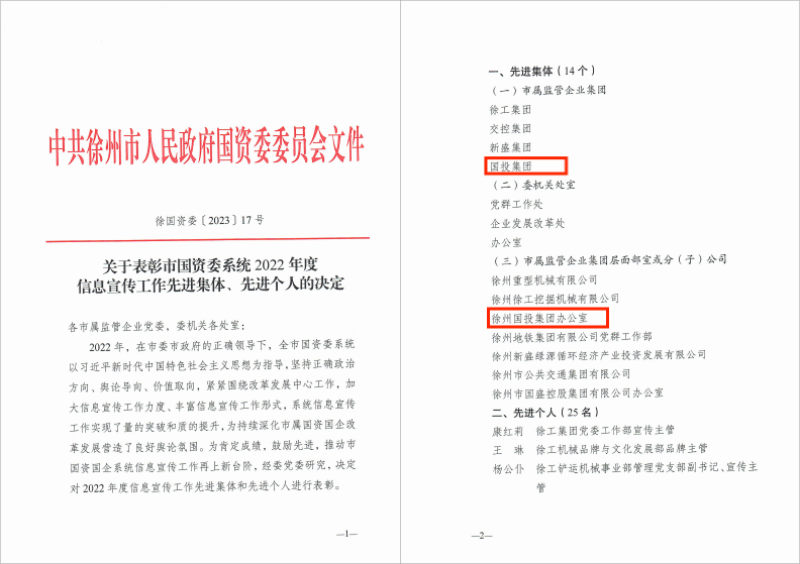 近日,市國資委表彰了市國資委系統(tǒng)2022年度信息宣傳工作先進集體,集團公司榮獲“市屬監(jiān)管企業(yè)集團先進集體”,集團公司辦公室榮獲“市屬監(jiān)管企業(yè)集團層面部室或分(子)公司先進集體”。