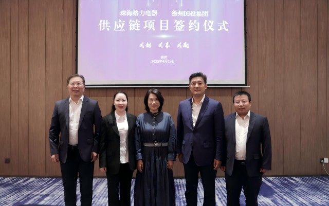 4月19日,徐州國投集團(tuán)與珠海格力電器合作供應(yīng)鏈項目簽約儀式在徐州舉行。珠海格力電器股份有限公司董事長兼總裁董明珠、投資總顧問沈勇,格力電器江蘇公司總經(jīng)理甄寧、浙江格力新能源有限公司總經(jīng)理葉飛,徐州市委常委、銅山區(qū)委書記、徐州高新區(qū)黨工委書記龔維芳,銅山區(qū)區(qū)委副書記、區(qū)長于帆,徐州國投集團(tuán)黨委書記、董事長孟光,黨委委員、副總經(jīng)理王濤出席簽約儀式。