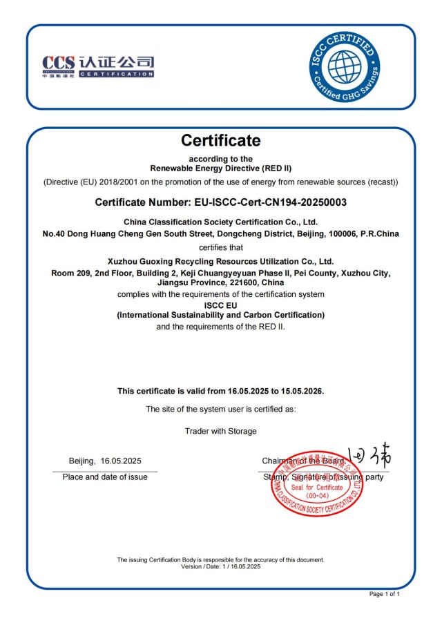 首戰(zhàn)告捷,開辟生物質(zhì)能源貿(mào)易新賽道。作為集團(tuán)公司能源板塊的第三戰(zhàn)略賽道——生物質(zhì)能源,國興公司積極響應(yīng)國家“雙碳”戰(zhàn)略,全力布局生物質(zhì)能源開發(fā)與應(yīng)用。今年5月,公司成功通過歐盟ISCC工業(yè)級混合油(UCO)認(rèn)證,成為符合國際可持續(xù)生物能源原料標(biāo)準(zhǔn)的核心供應(yīng)商。此次千噸級訂單的落地,不僅驗(yàn)證了公司在原料品質(zhì)、供應(yīng)鏈管理及市場響應(yīng)能力上的優(yōu)勢,更彰顯了其在生物質(zhì)能源貿(mào)易領(lǐng)域的核心競爭力。