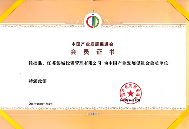 10月31日,彭城投資公司正式獲批成為中國產(chǎn)業(yè)發(fā)展促進(jìn)會會員單位。獲批后,公司可通過協(xié)會協(xié)同參與政策研究與行業(yè)發(fā)聲、標(biāo)準(zhǔn)制定與安全護(hù)航、技術(shù)創(chuàng)新與成果轉(zhuǎn)化,推動產(chǎn)業(yè)發(fā)展與綠色金融有效銜接,加大培育新型能源新質(zhì)生產(chǎn)力,為發(fā)展增添新動能。