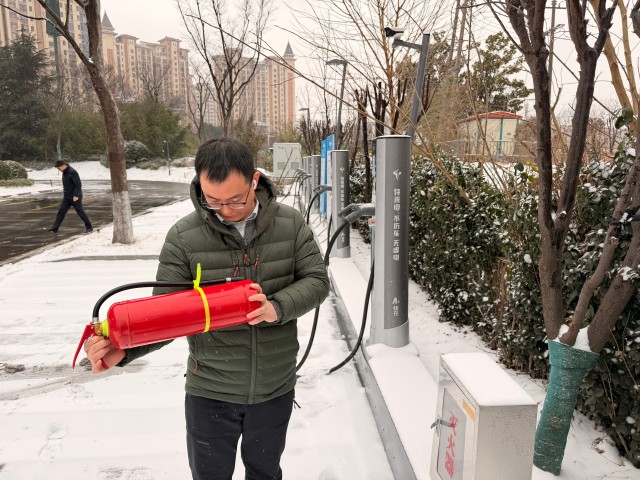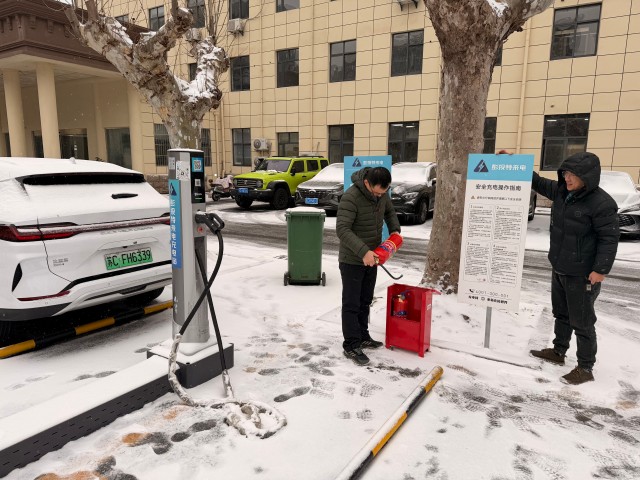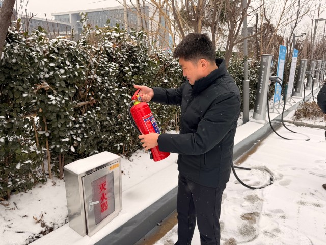 檢查組一行先后前往中煤第五建設(shè)公司職工醫(yī)院充電場站、喜來登酒店充電場站等地,現(xiàn)場對安全消防設(shè)施、進出口通道、充電車位積雪情況進行專項處理,逐一排查充電樁機體及線路因積雪覆蓋、低溫受潮可能存在潛在漏電隱患,并對極端天氣應(yīng)急處置預(yù)案工作部署進行實地落實。