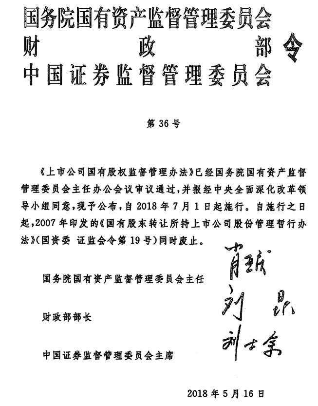 上市公司國(guó)有股權(quán)監(jiān)督管理辦法